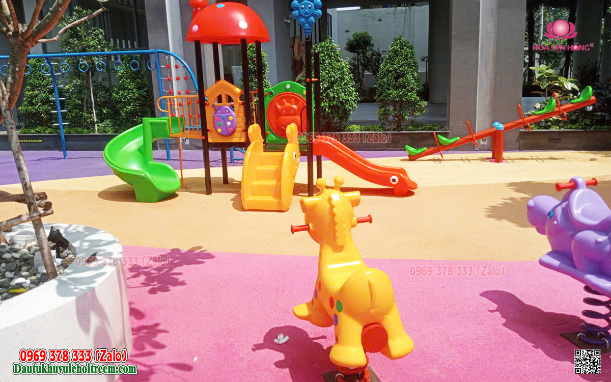 Công ty đồ chơi Hoa Sen Hồng hân hạnh là đơn vị lắp đặt, thi công sân chơi ngoài trời chung cư The Maison TDM, Bình Dương